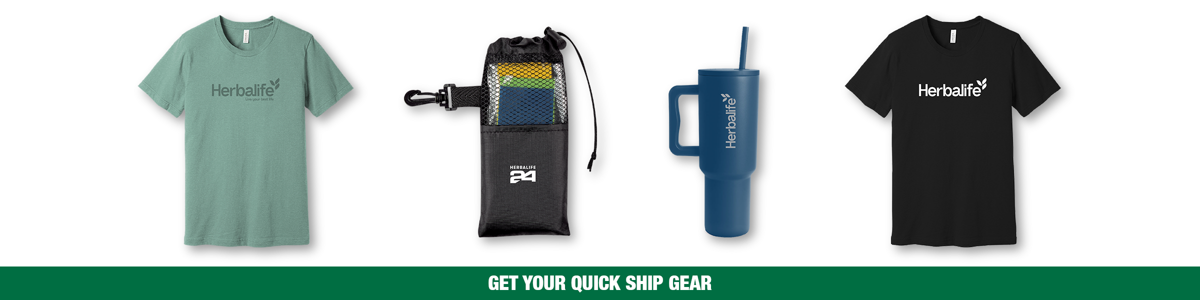 The Quick Ship store offers several of our most popular Herbalife Gear items with a quicker turnaround time. Customers within the United States should estimate arrival of their order from Michigan within 3-7 business days, depending upon shipping method selected at checkout. US Shipping only. Please note, that this page is separate from the main ordering page.